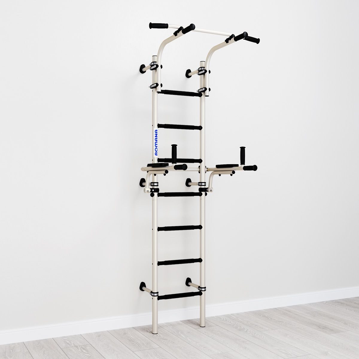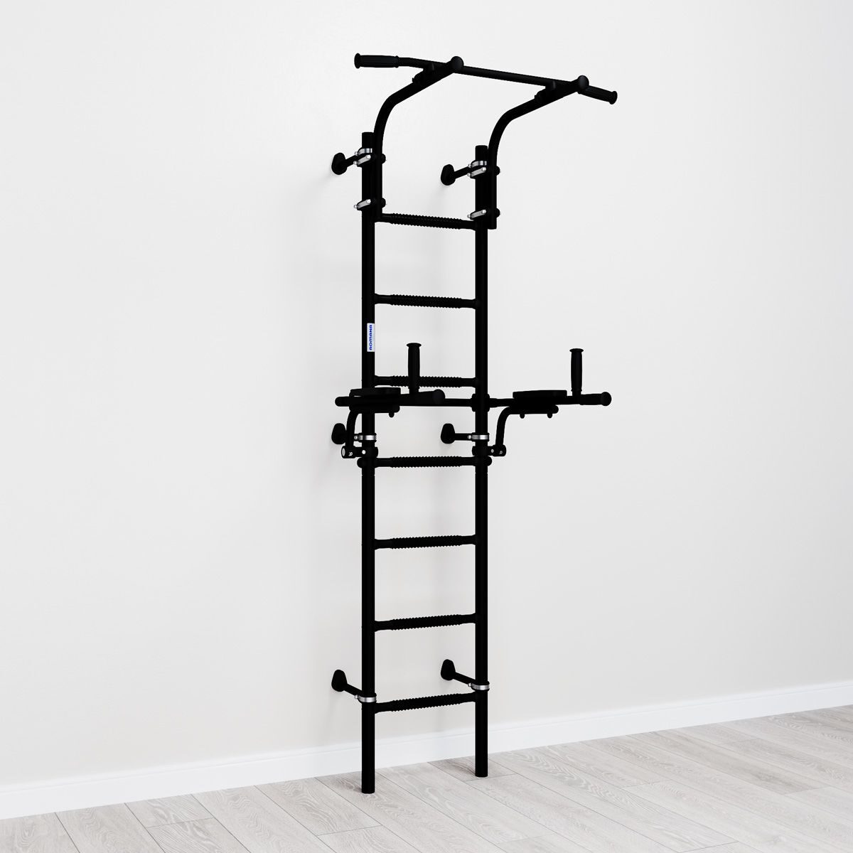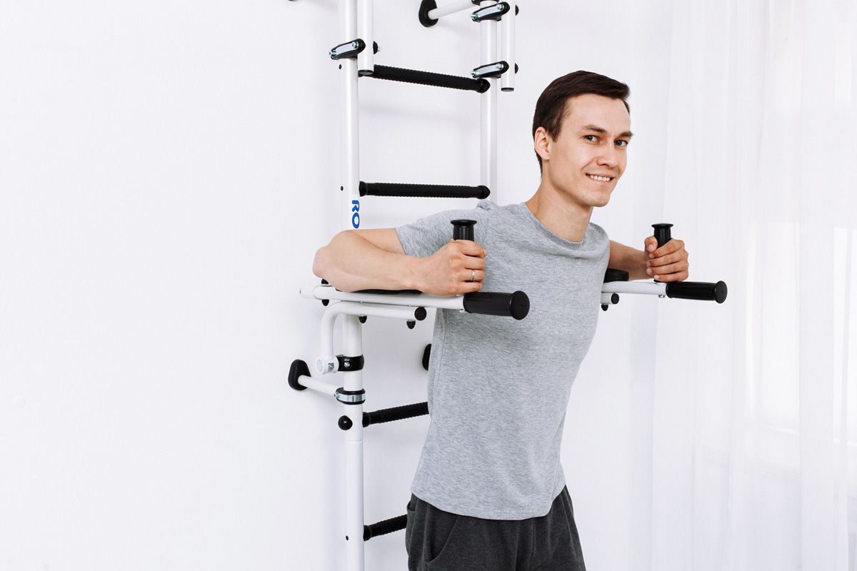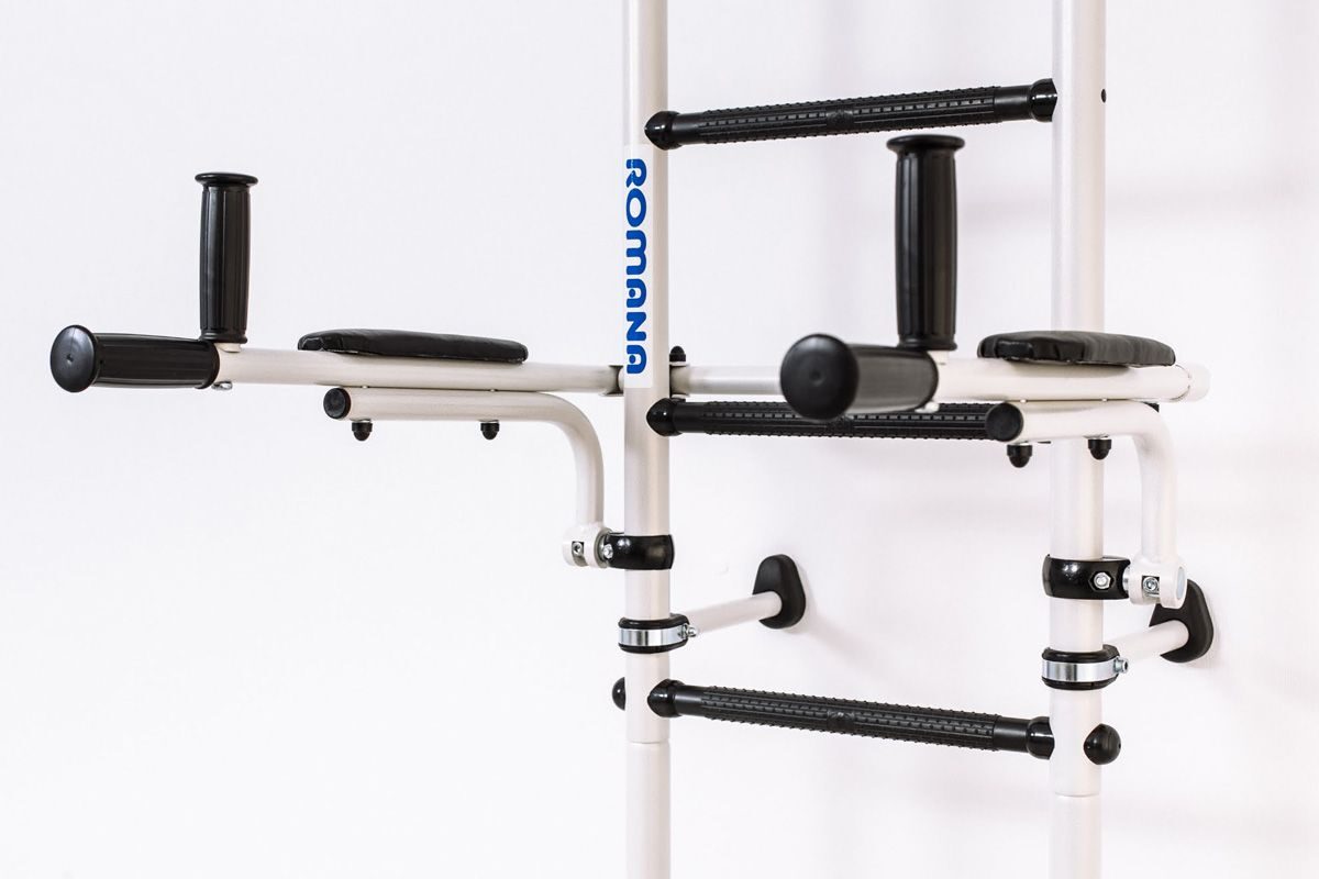 Оптимальные брусья: Брусья имеют идеальный размер для тренировок и легко складываются в вертикальное положение после занятий.