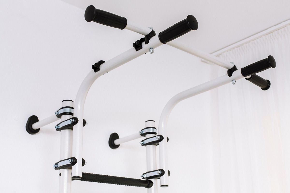 Регулируемый турник: Благодаря современным надежным хомутам, высоту турника можно легко настроить под рост пользователя.