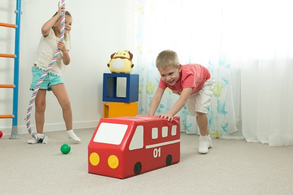 "Pojarnaya maşina" konturlu oyuncağı hər yaşdakı uşaqlar üçün avtomobil şəklində yumşaq bir moduldur. Vestibulyar aparatı məşq etdirir, ayaq və bel əzələlərini gücləndirir. Oyuncaq digər yumşaq modullarla birlikdə də istifadə edilə bilər. Məktəbəqədər və ibtidai məktəb müəssisələrinin uşaq oyun otaqlarında, həmçinin mənzildə və həyət evlərində də istifadə edilə bilər.